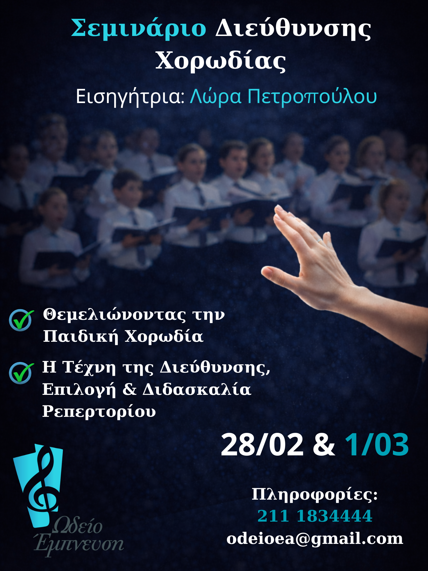 Σας περιμένουμε για να ανακαλύψουμε μαζί πώς η παιδική φωνή μεταμορφώνεται σε ένα ζωντανό μουσικό όργανο και πώς ο μαέστρος γίνεται ο οδηγός σε αυτό το μαγικό ταξίδι. Ας δώσουμε στα παιδιά τη φωνή που τους αξίζει!
